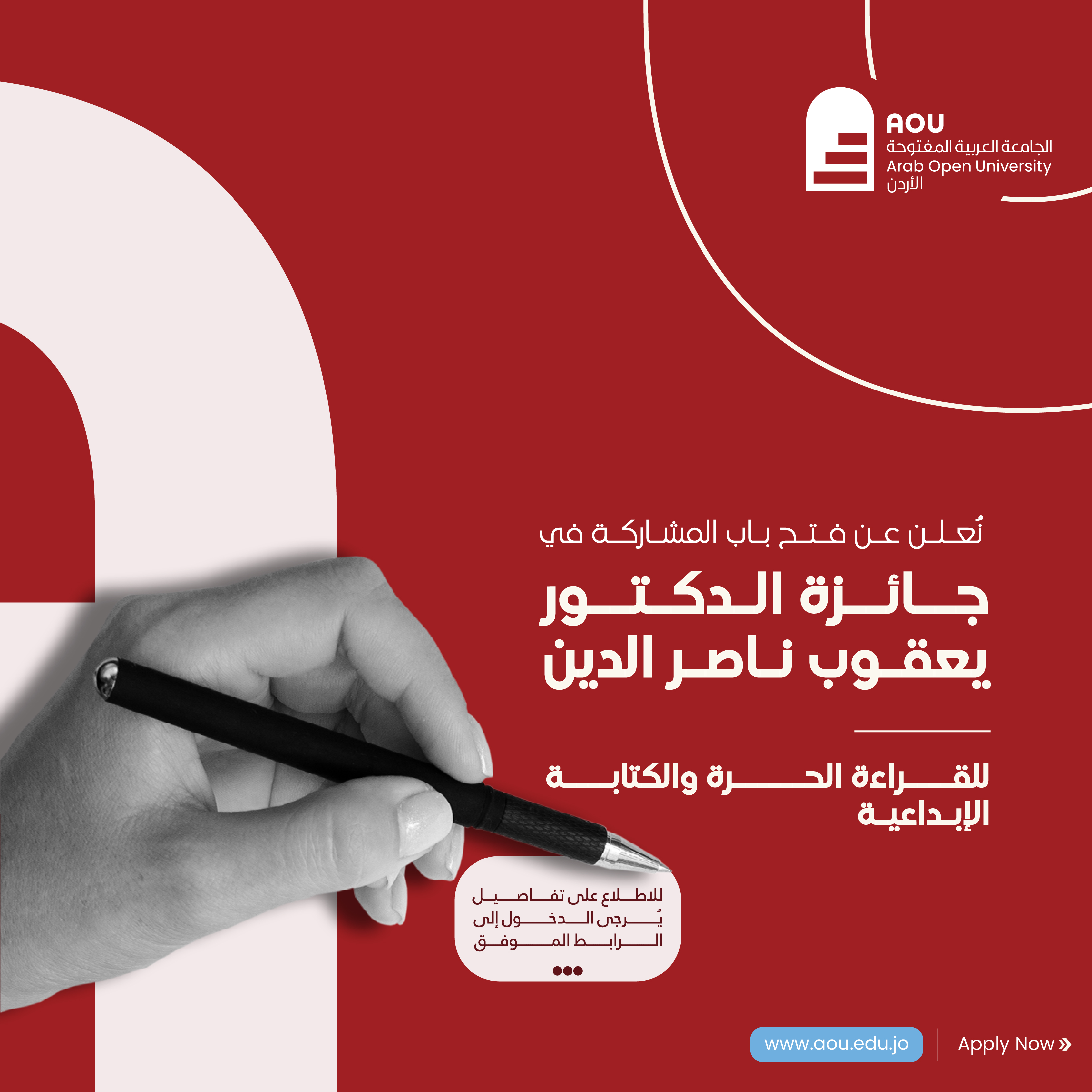 The Arab Open University – Jordan announces the opening of participation in the Dr. Yaqub Nasser Al-Din Award for Free Reading and Creative Writing, launched by the Middle East University in its fifth season (2025–2026), on the occasion of celebrating World Arabic Language Day.